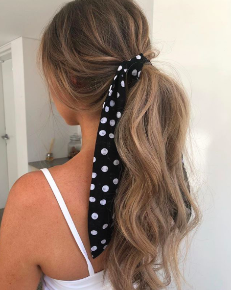 J'attache mes cheveux avec une queue-de-cheval élégante. Doux et sans plis, il est polyvalent et essentiel dans ma trousse de coiffure.